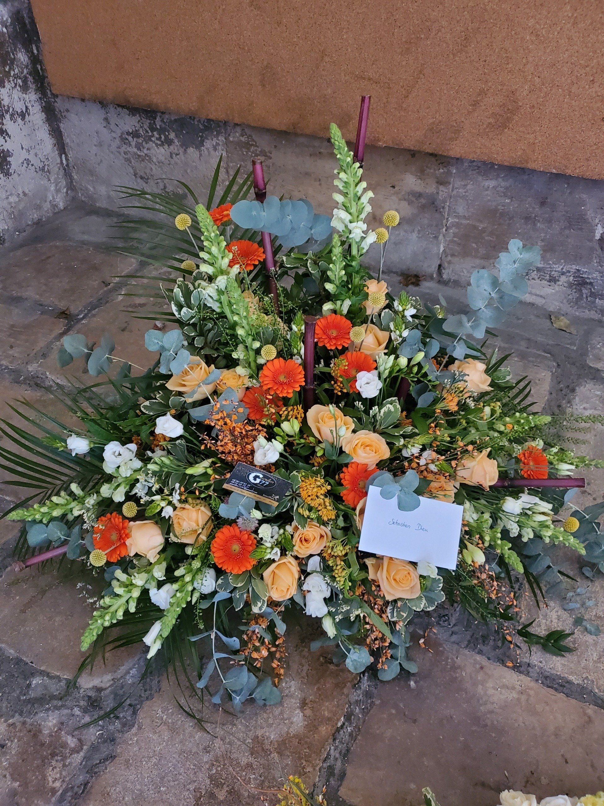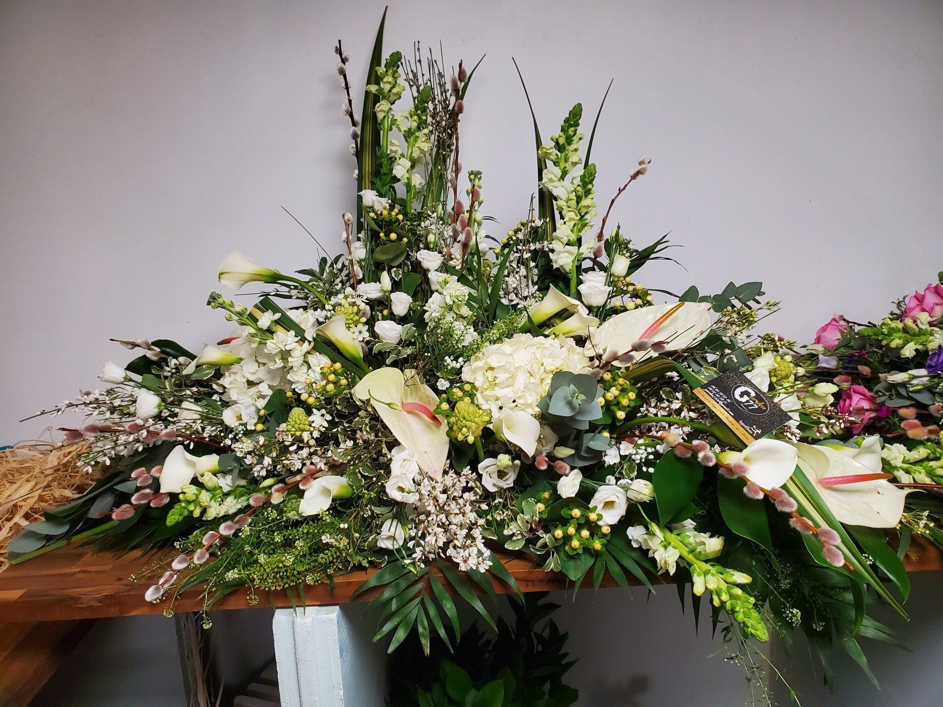 Nous réalisons vos compositions en fleurs et/ou plantes pour un dernier hommage en livraison à domicile, au funérarium, au cimetière ou sur le lieu de votre choix.